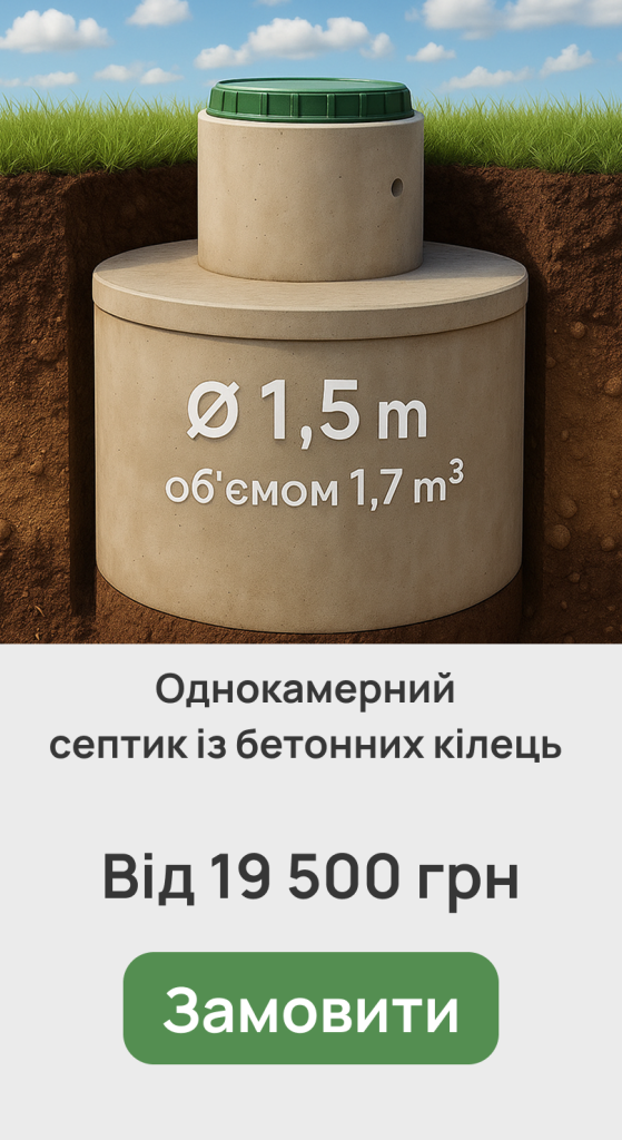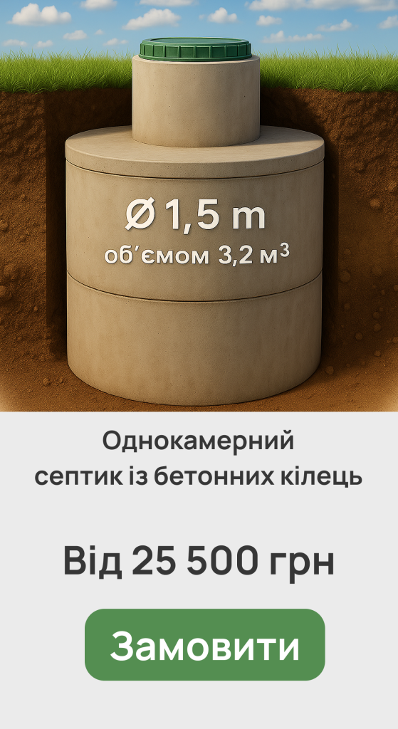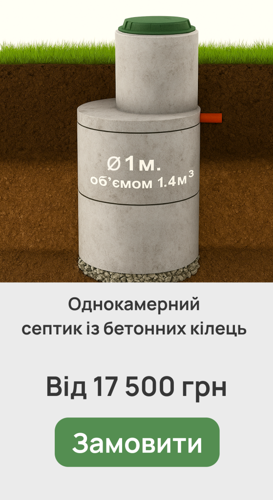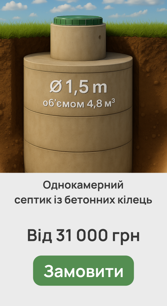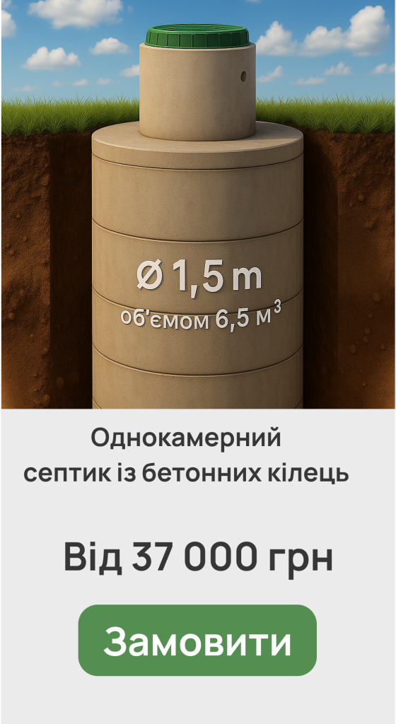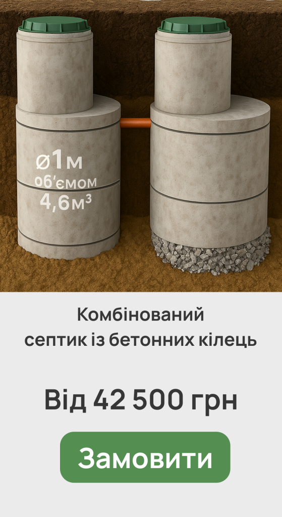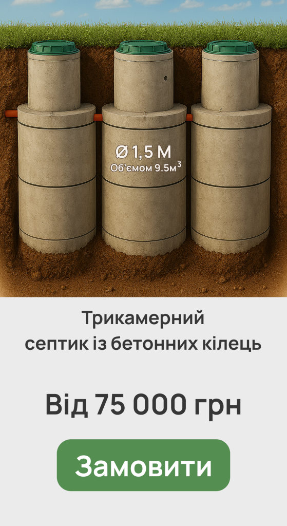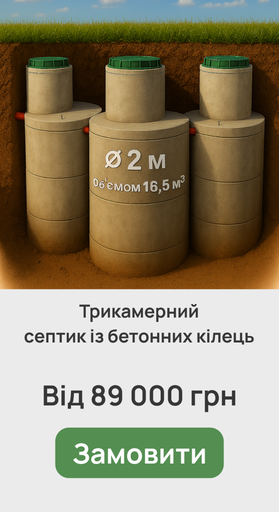 Наша компанія пропонує облаштування каналізації, установку септиків під ключ. Звертаючись до нас, Ви отримуєте високу якість і доступні ціни, адже ми маємо власне виробництво бетонних кілець, а також парк автомобілів для транспортування, обладнаних кранами для розвантаження і завантаження.